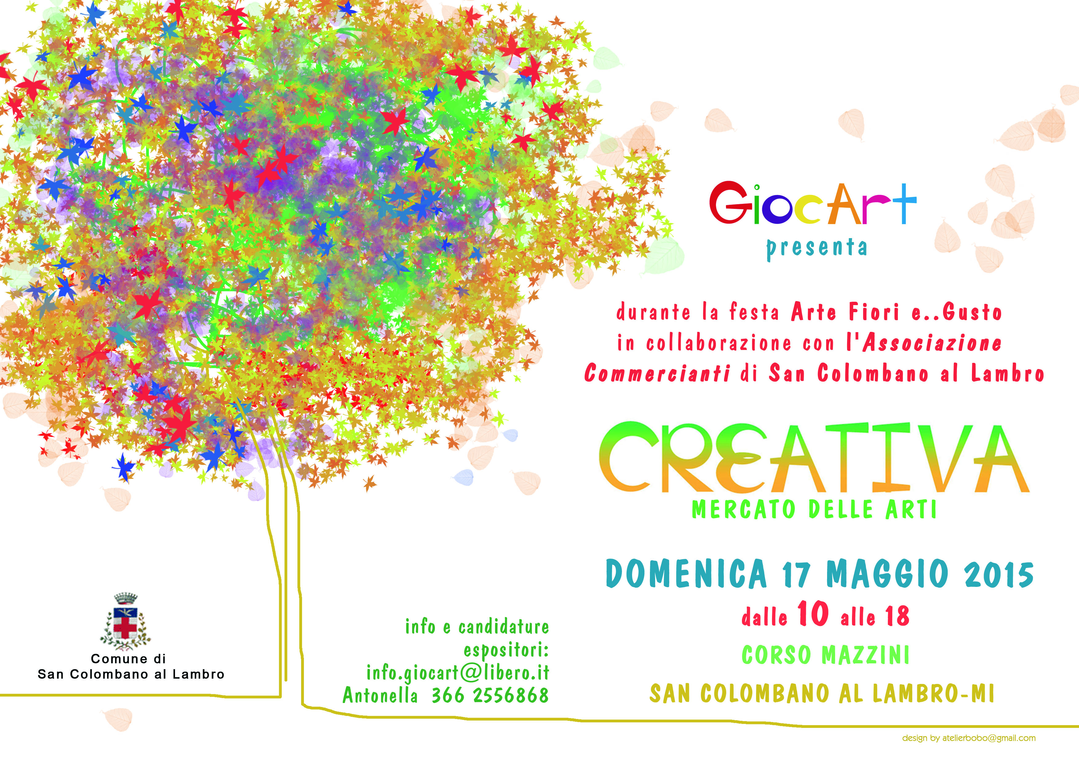 Creativa, Il mercatO delle arti Creative ideatO da GiocArt ( con il patrocinio del Comune di San Colombano al Lambro ) si unisce a CONFCOMMERCIO e de Il Picchio Verde per la festa Arte fiOri e Gusto in una giOrnata da nOn perdere anche in questo 2015, Domenica 17 Maggio, da mattina fino a sera, per il centro del paese.