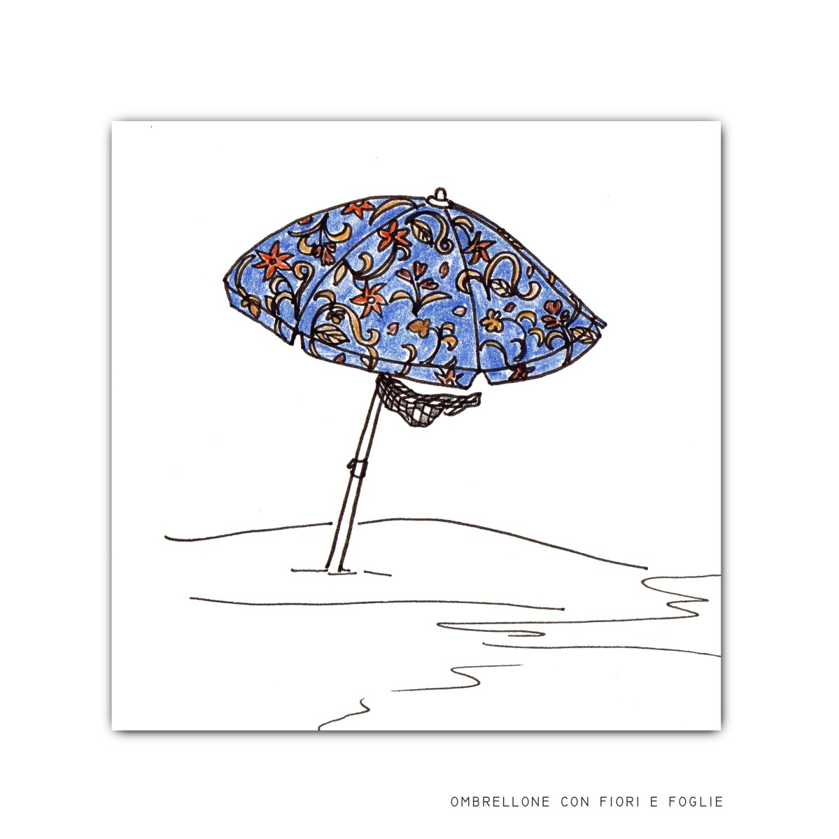 ombrellone con foglie e fiori, stampa, 10×10 cm