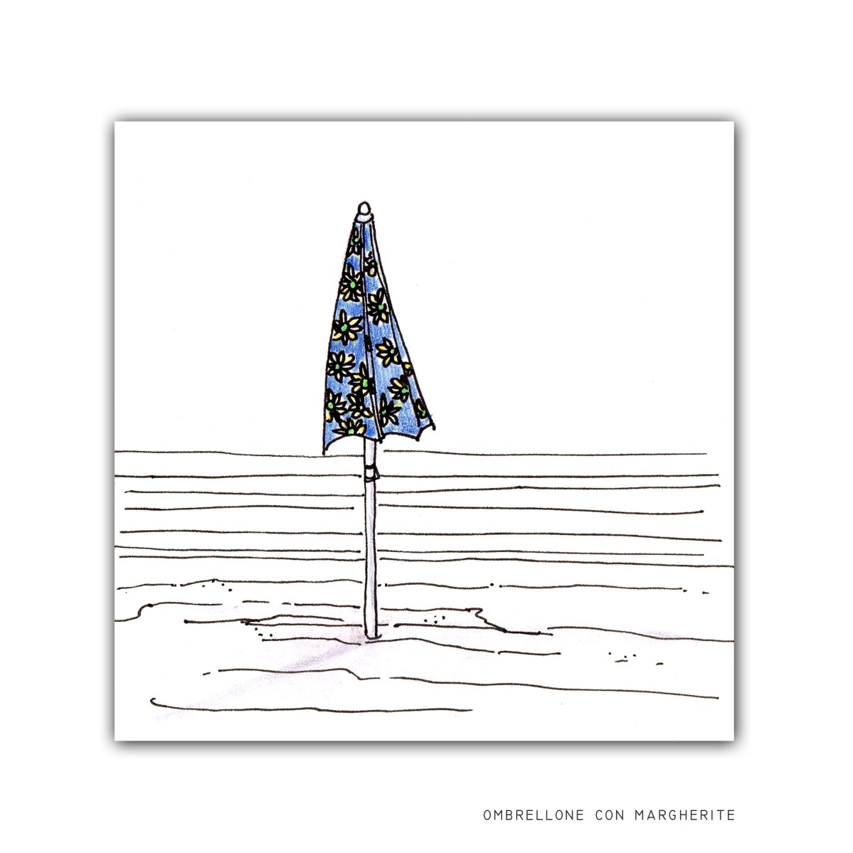 ombrellone con margherite, stampa, 10×10 cm