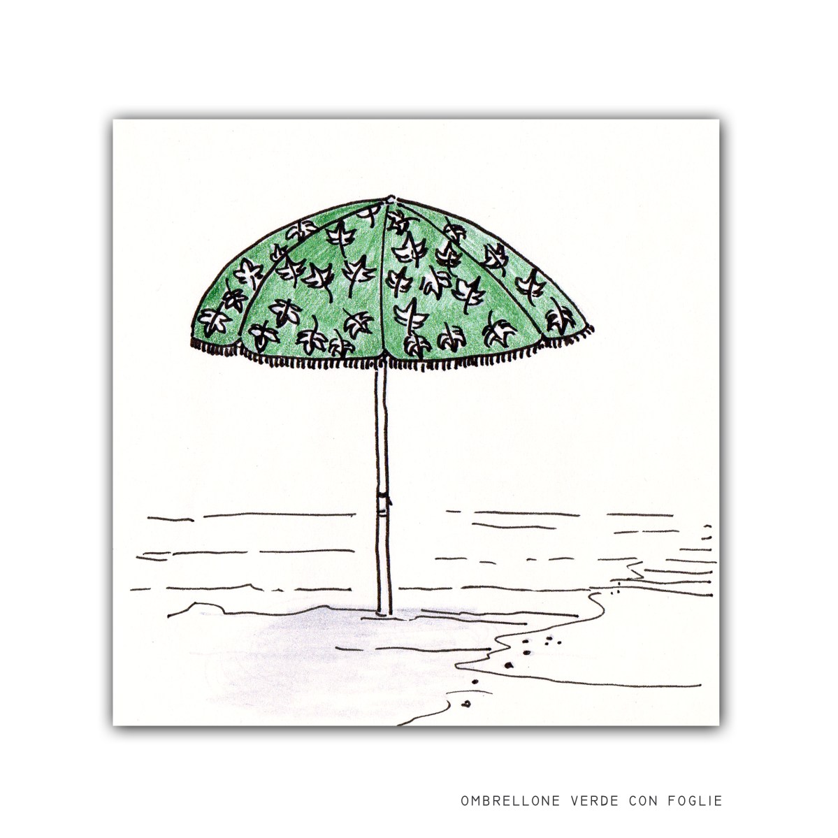 ombrellone verde con foglie, stampa, 10×10 cm